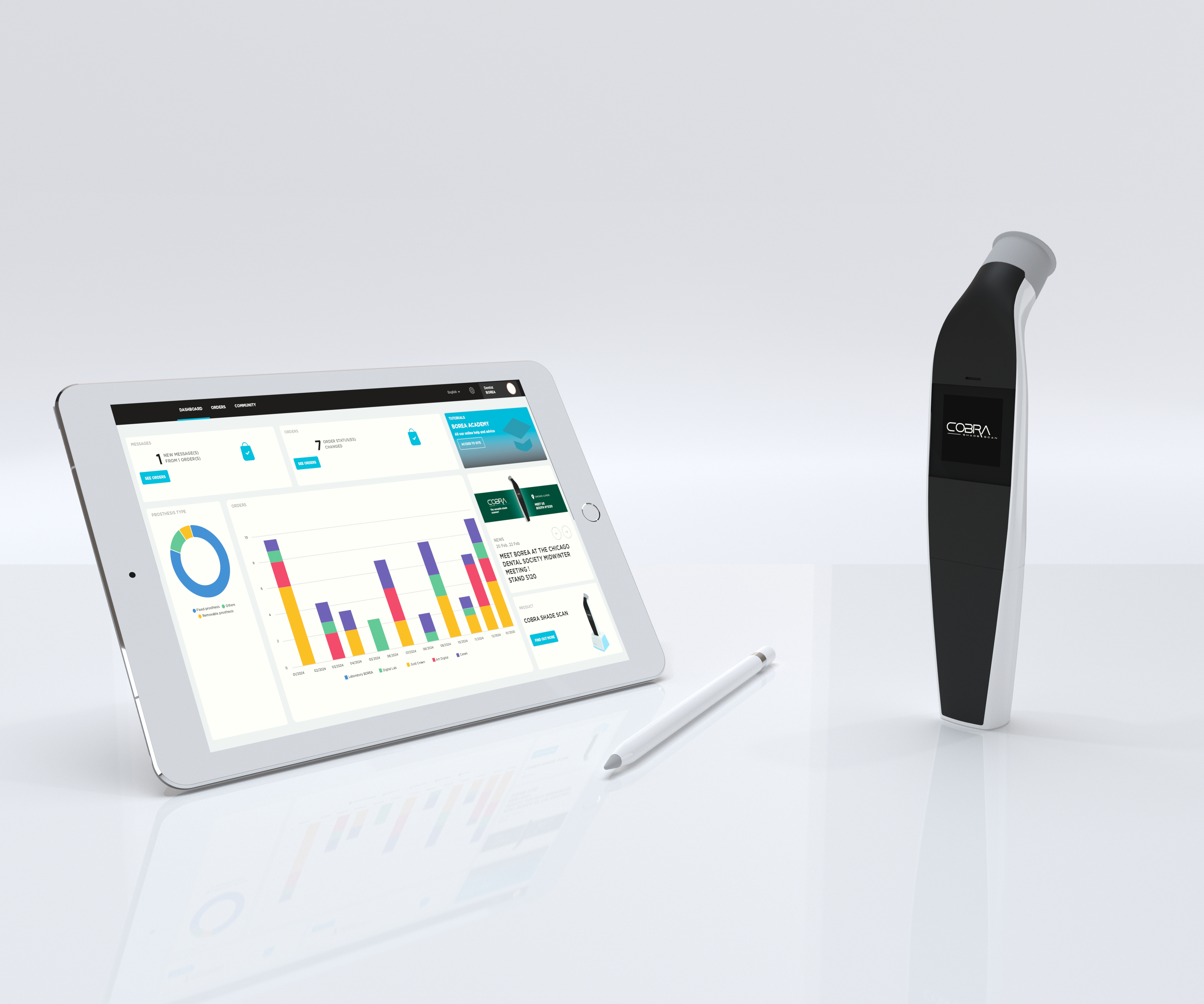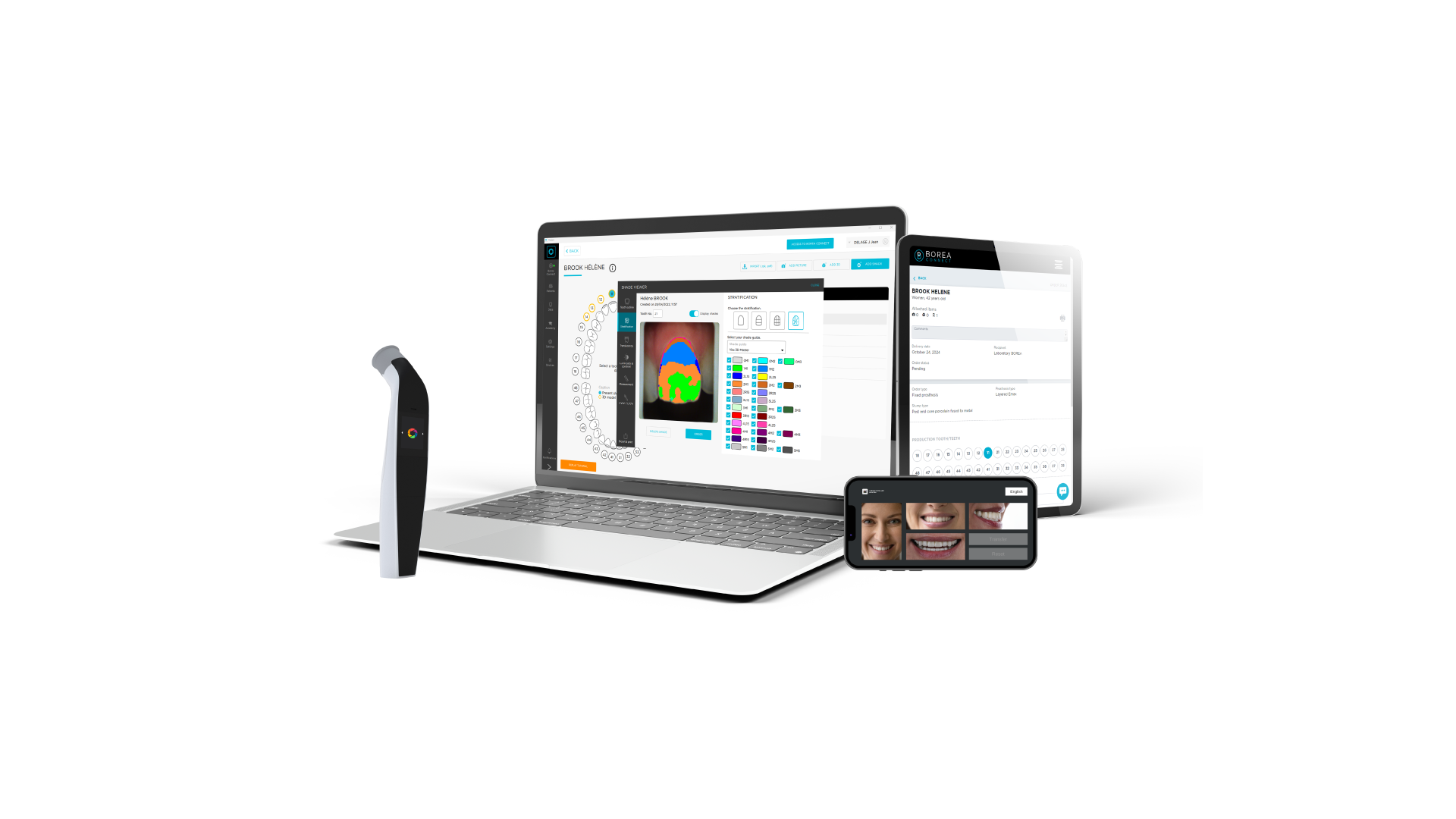 Grâce aux logiciels Vision et Borea Connect inclus, COBRA permet l’analyse, l’archivage et l’envoi sécurisé des cas esthétiques. Idéal pour les couronnes, bridges, facettes ou éclaircissements, il garantit un résultat fidèle, reproductible et professionnel.